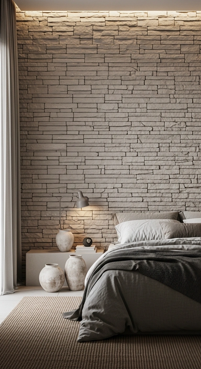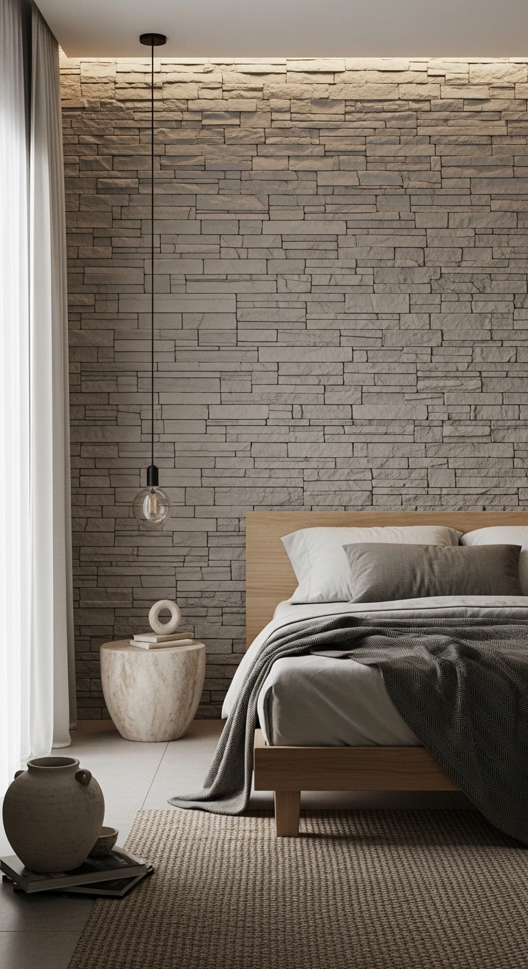 Pair these textures with soft fabrics to balance the rough and smooth elements. A chunky knit throw or woven rug can soften the look and make the room feel inviting. Stick to earthy tones like beige, warm gray, and off-white. Avoid glossy finishes, as they break the natural feel. This idea works best when used on one feature wall, allowing the rest of the room to stay light and open.