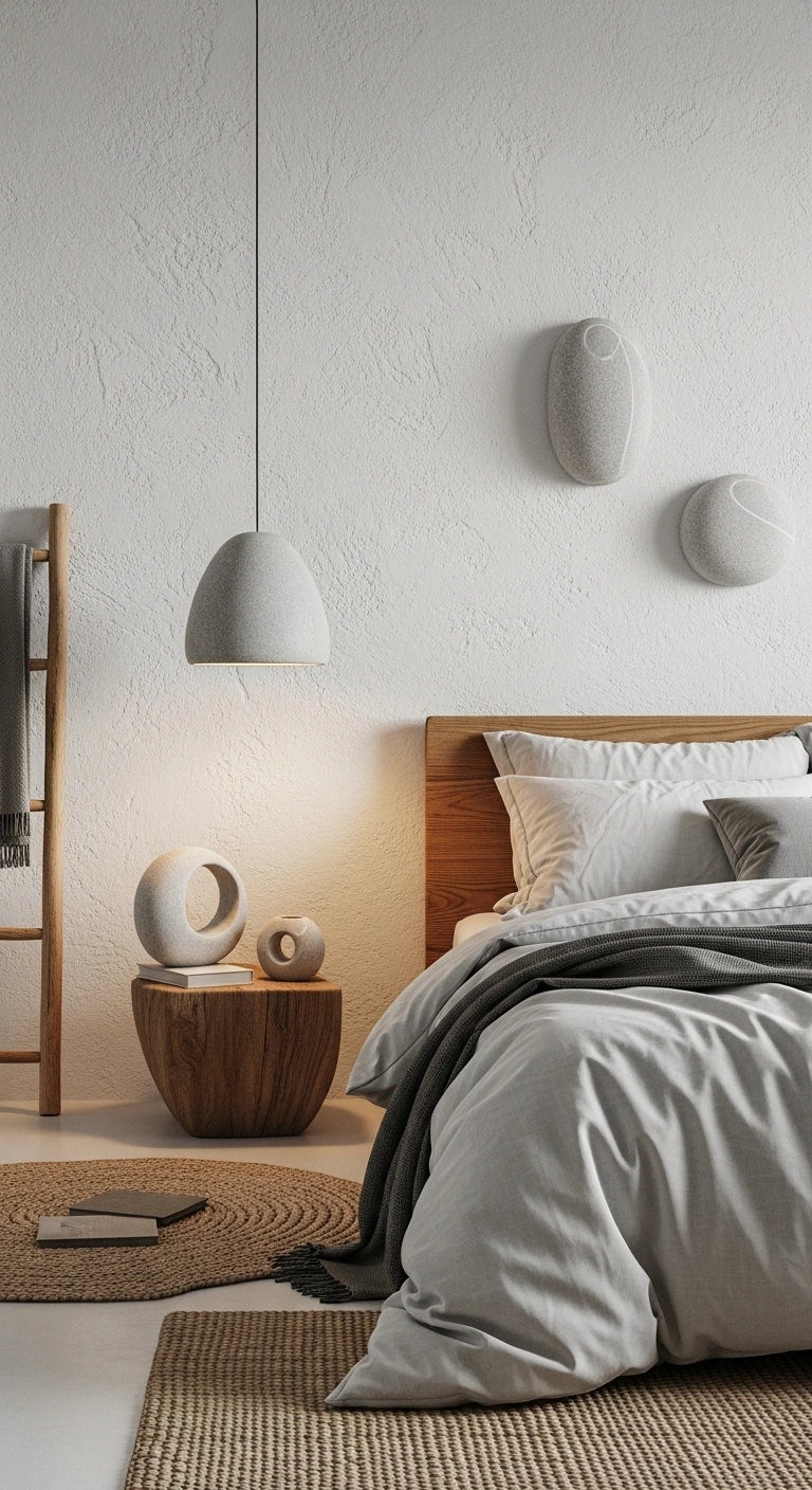 Use a small stone bowl on a dresser or bedside table and pair it with soft lighting. Choose natural colors like gray, beige, and soft white to maintain harmony. You can also add pebble-textured rugs or ceramic pieces with organic shapes. This idea adds quiet detail without overwhelming the room, keeping the focus on calmness and natural balance.