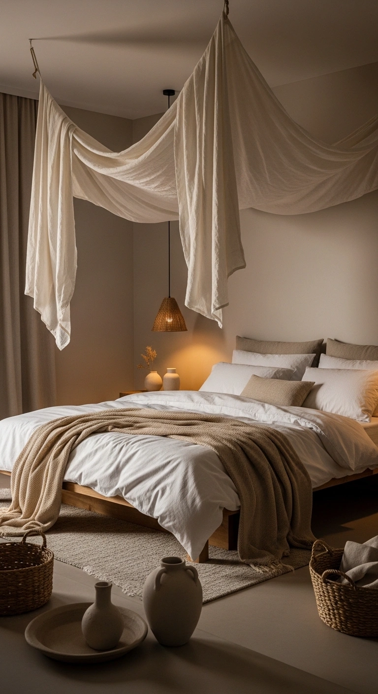 15. Soft Canopy Drapes for Light Movement