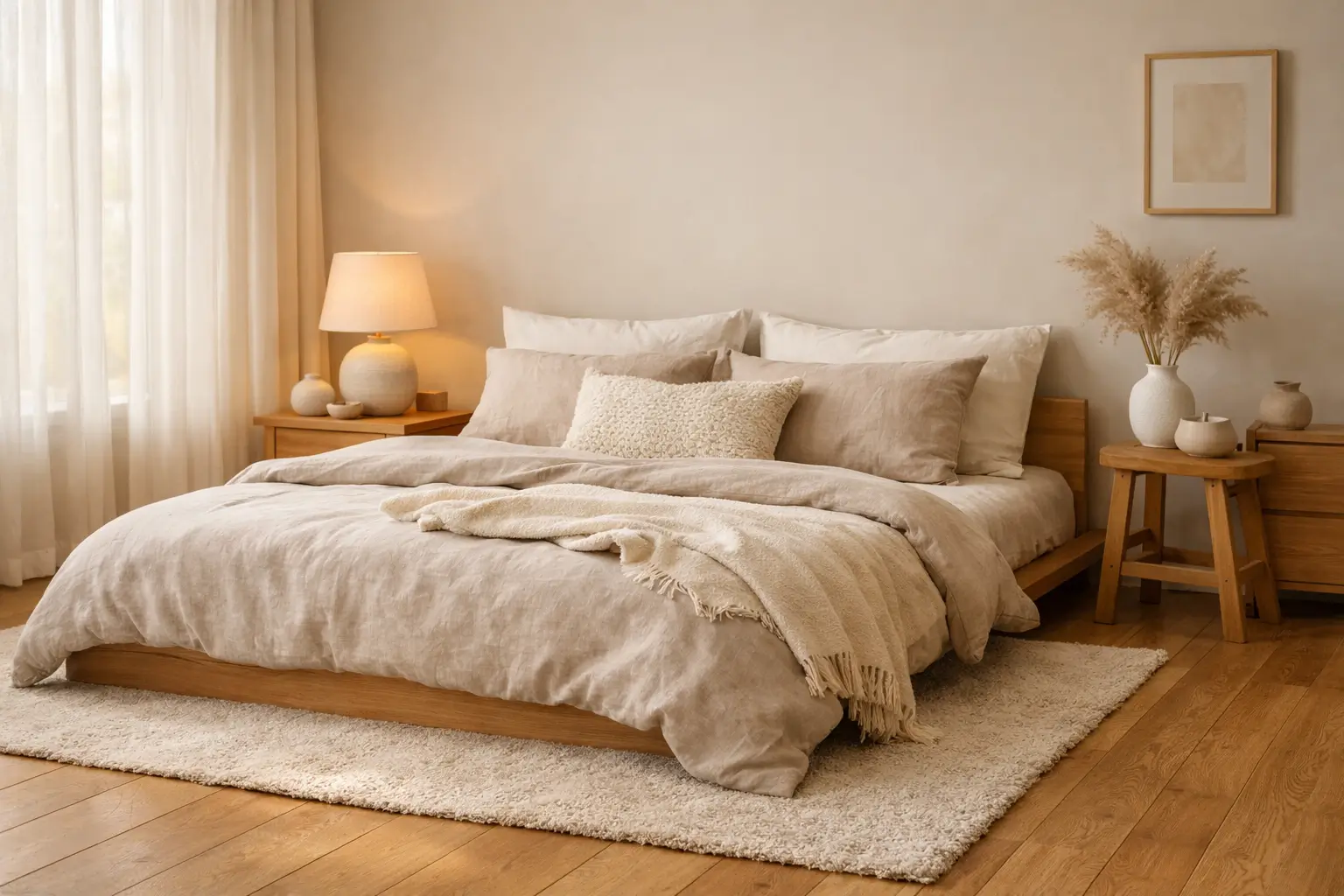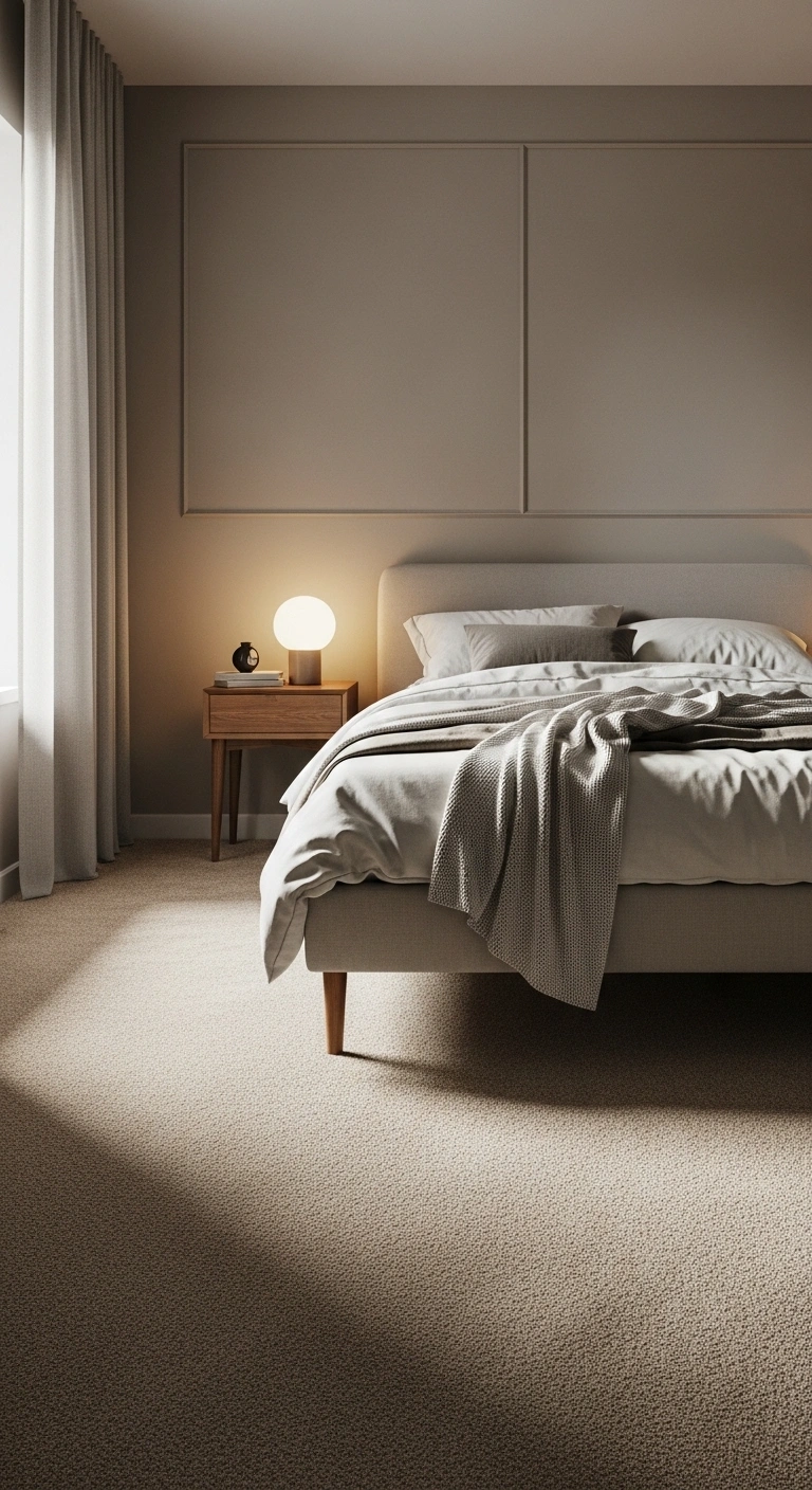 Plush carpet flooring is one of the easiest ways to make a bedroom feel warm and inviting. Go for soft neutral shades like sandy beige, warm gray, or muted taupe. These colors create a peaceful base and make the room feel larger and softer.