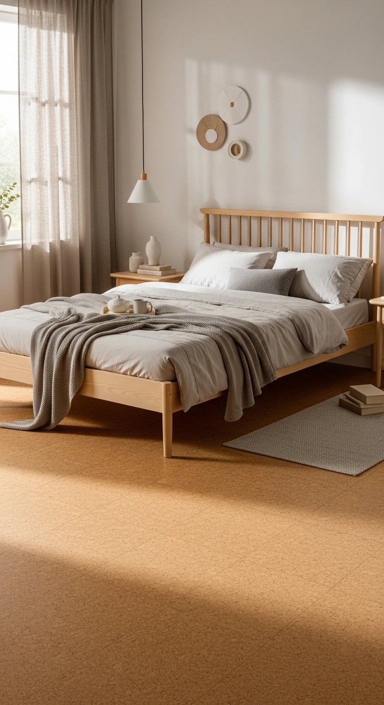 Choose natural cork tones with subtle patterns for a warm, organic look. Pair it with simple décor—light wood furniture, soft fabrics, and neutral colors. Add a cozy rug near the bed for extra comfort. Cork also helps maintain a comfortable temperature, making it a smart choice for year-round use.
