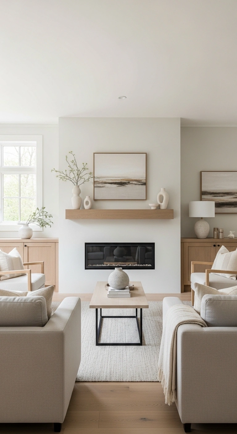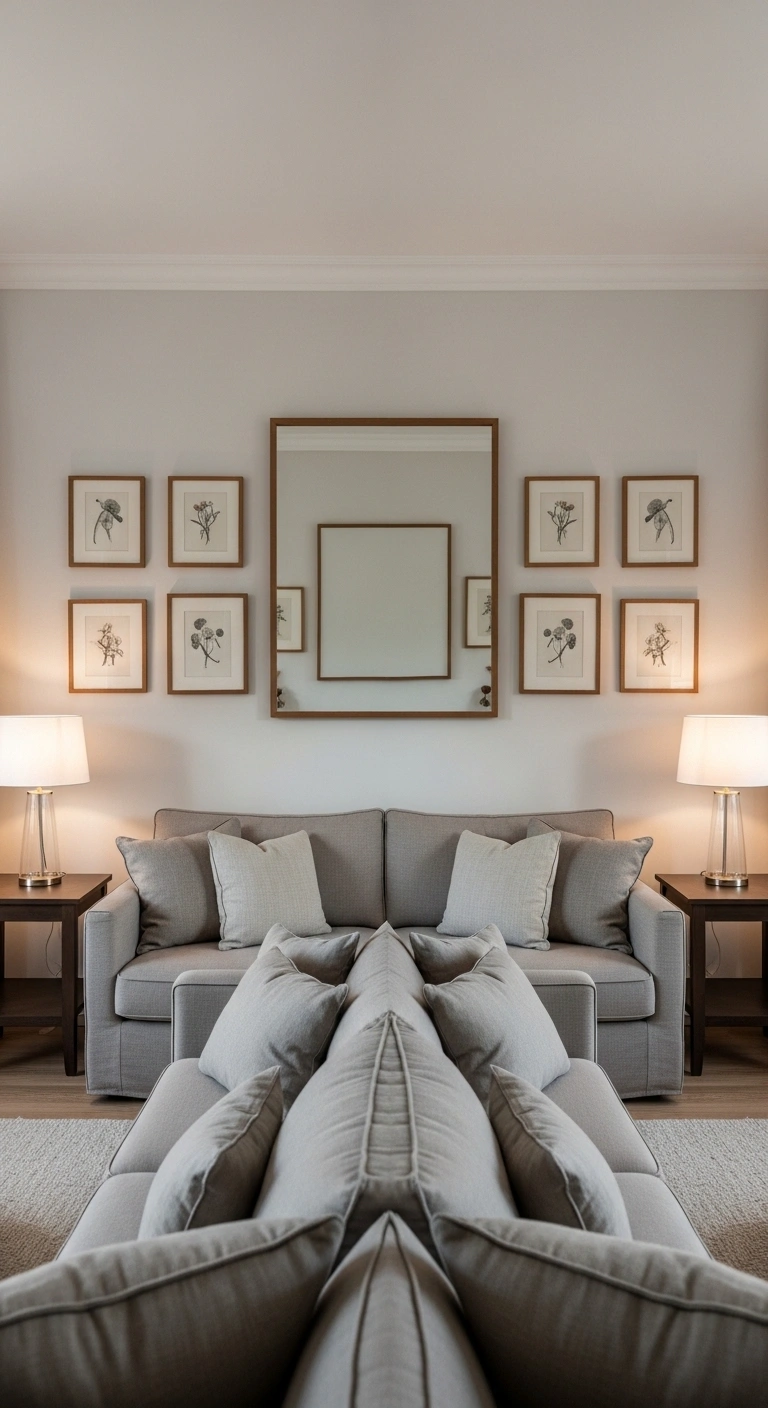Ensure both pieces are aligned at the same height and spaced evenly. You can use matching frames to strengthen the symmetry. This approach feels modern and clean while still adding personality to your living room without overwhelming the space.