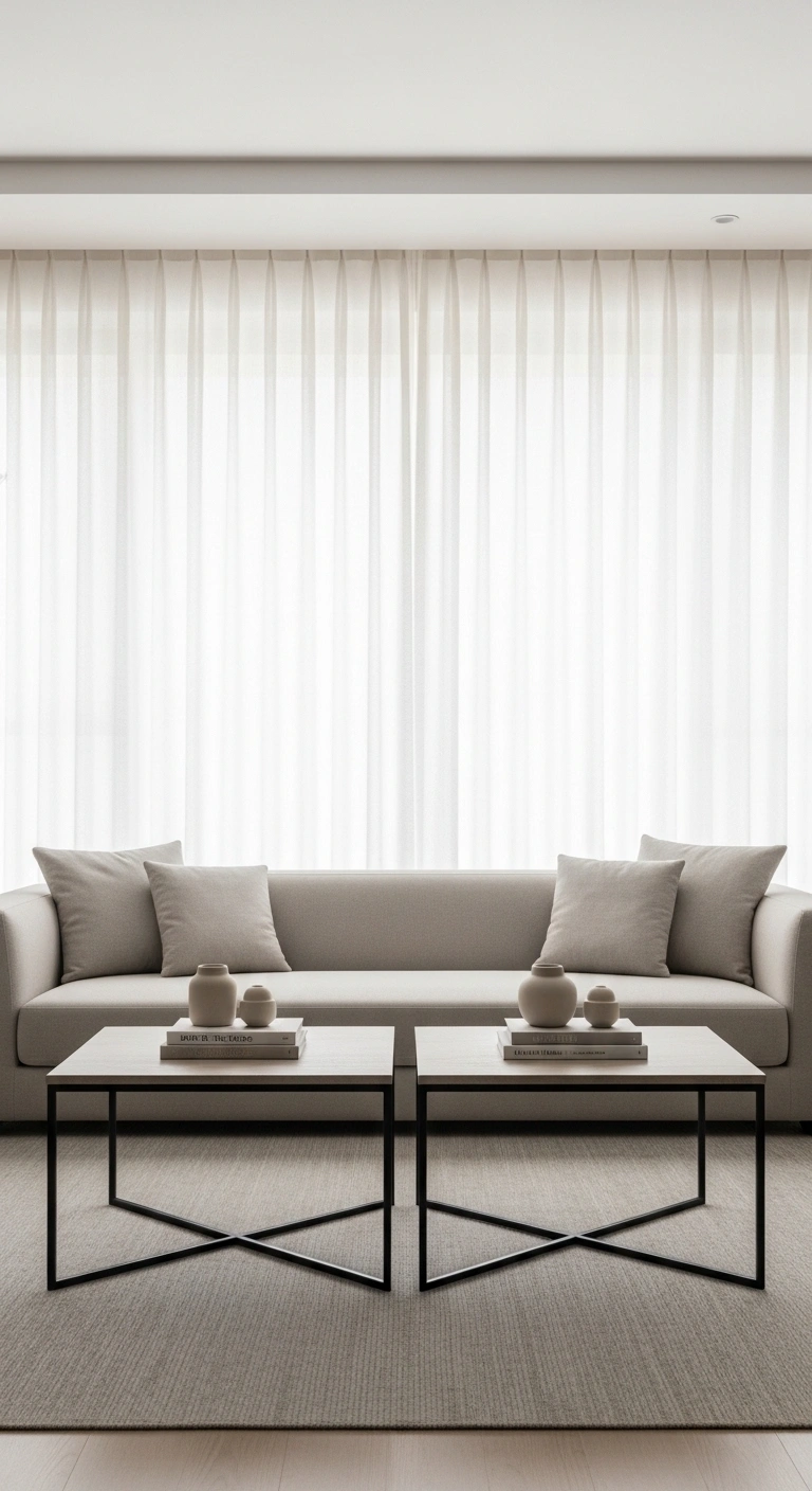 Use identical curtains on both sides of your windows to create a soft, symmetrical frame. Choose light fabrics like linen or sheer cotton to allow natural light to filter through evenly. This creates a gentle glow that enhances the calm feeling of the room.