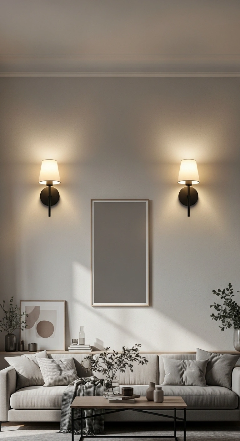 Add two identical wall sconces on either side of a central element like artwork, a mirror, or a fireplace. This creates a soft, even glow that enhances the room’s symmetry. Choose warm light tones to keep the atmosphere cozy and inviting.