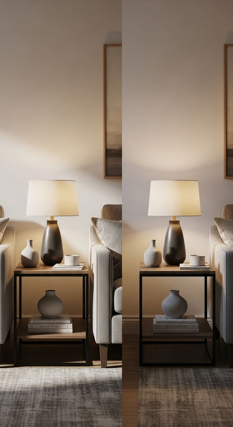 Lighting plays a major role in symmetry. Place two identical floor lamps on either side of a sofa or seating area to create a balanced glow. Choose lamps with simple silhouettes and warm light tones to avoid harsh contrasts. This setup ensures that both sides of the room feel equally illuminated.