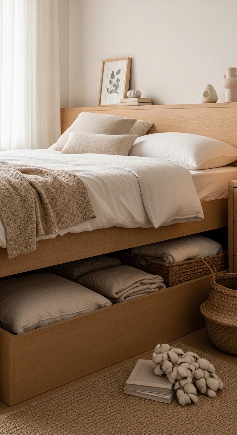 Keep your bedroom clutter-free by using hidden storage solutions. Choose beds with storage drawers or use soft baskets that blend with your decor.
