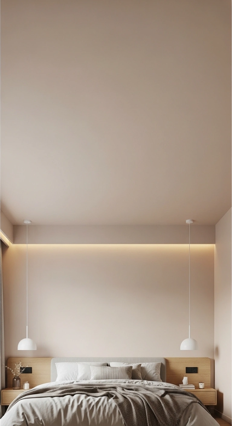 Paint your ceiling in a very soft shade like pale beige, blush, or light grey instead of plain white. This adds a subtle warmth and makes the room feel more complete.