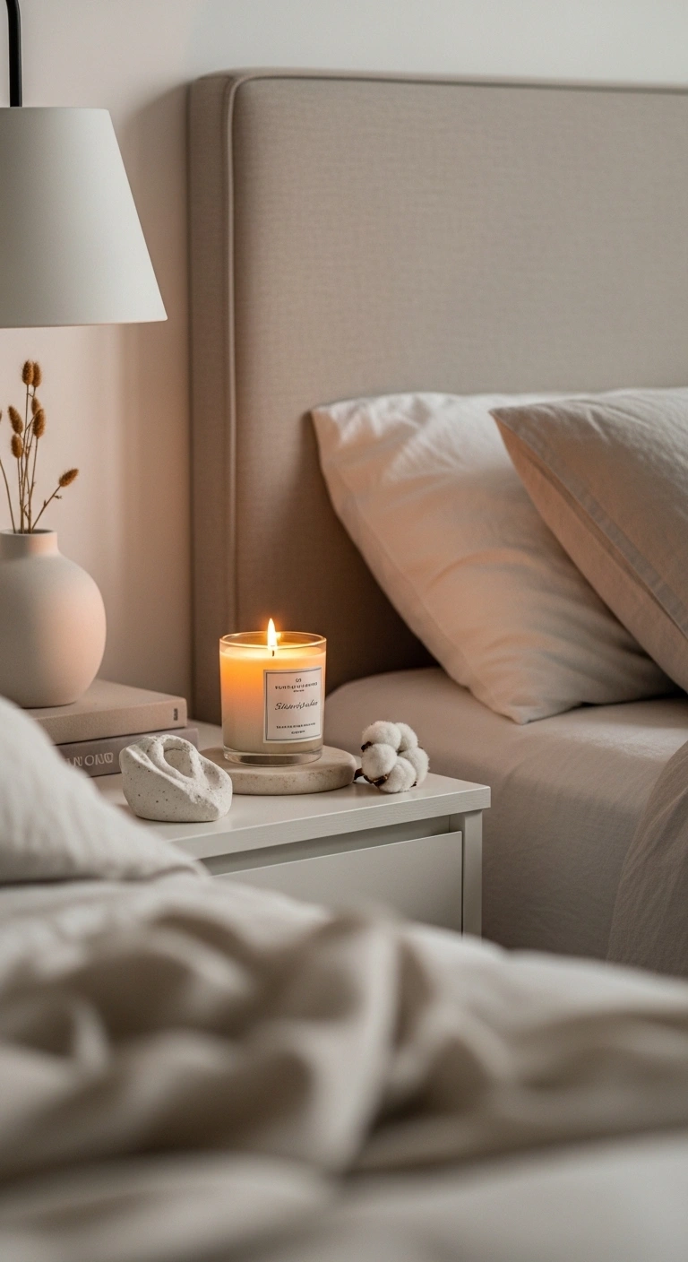 Pair this with soft textures like smooth sheets and plush rugs. Keep everything light and not too strong, so the space feels relaxing instead of overwhelming. This idea works because it engages your senses, helping you feel calm and comfortable.