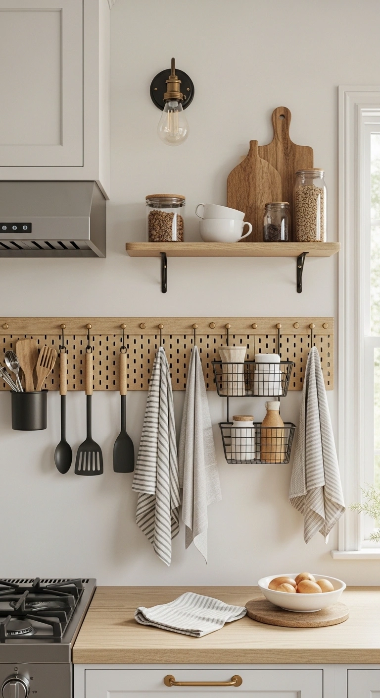 A peg rail is a simple feature that adds both charm and usefulness. It gives you a flexible way to hang items without taking up counter space.