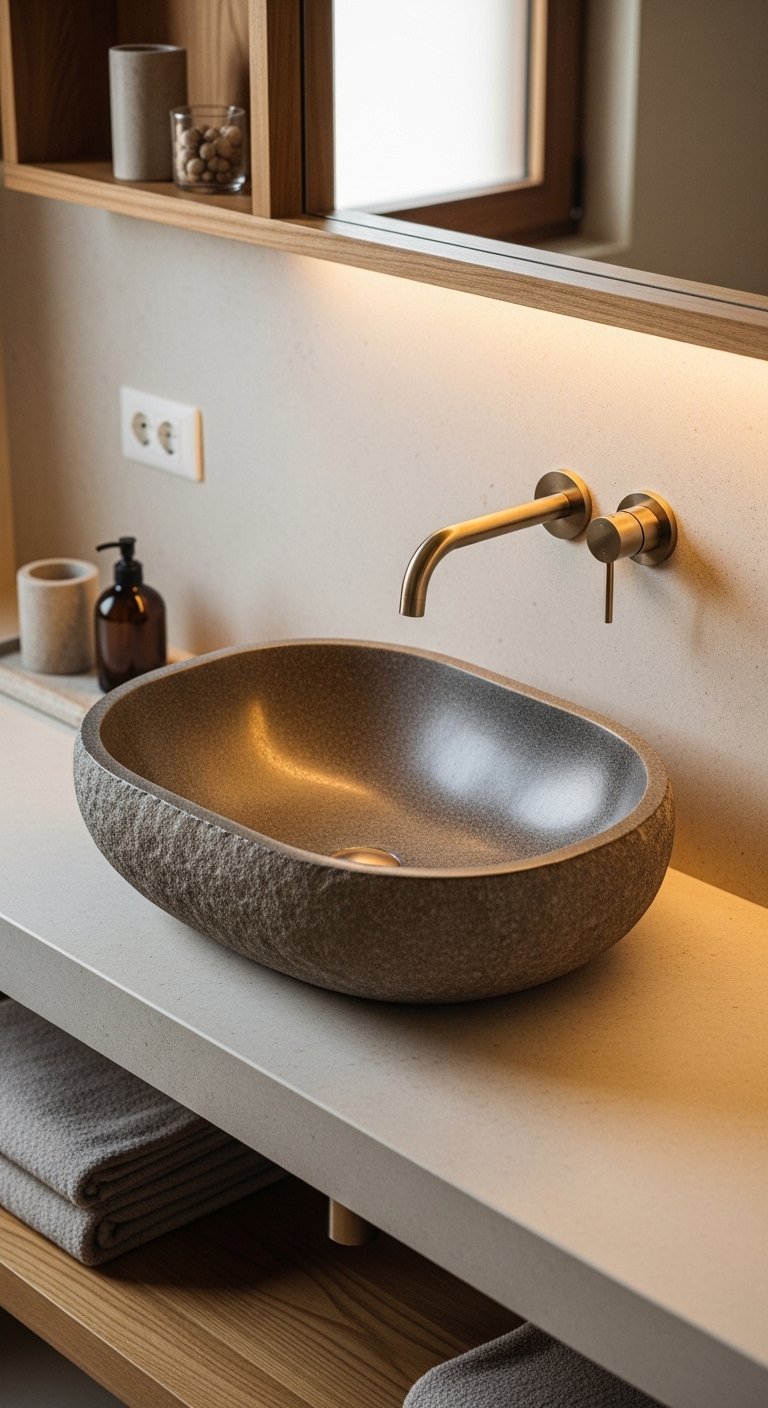 19. Incorporate Stone Basins for a Natural Touch