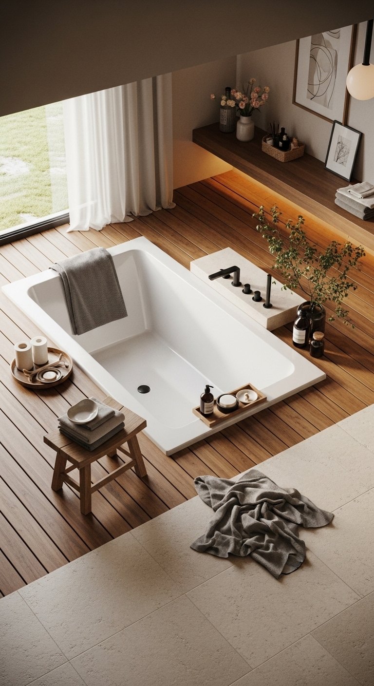 1. Create a Sunken Bathtub Lounge That Feels Like a Hidden Retreat
