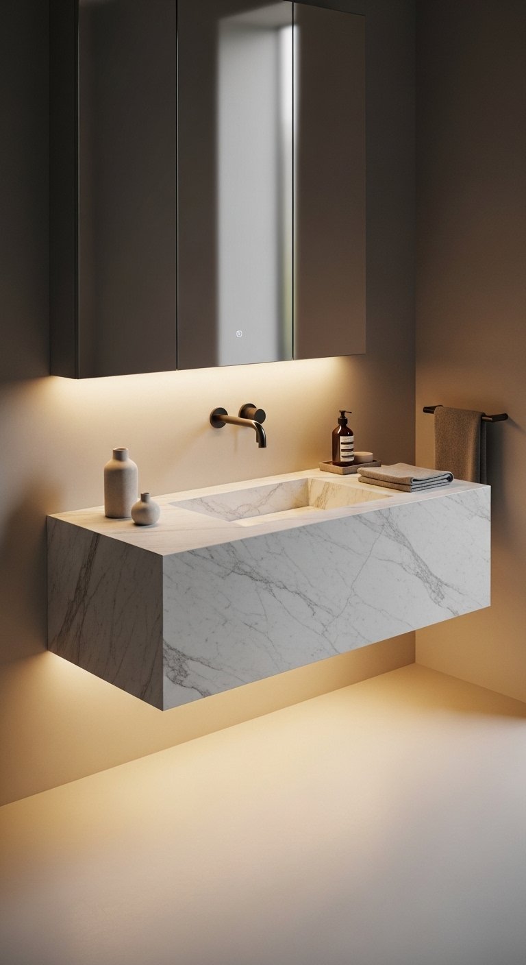 3. Build a Floating Stone Vanity With Hidden Glow Lighting