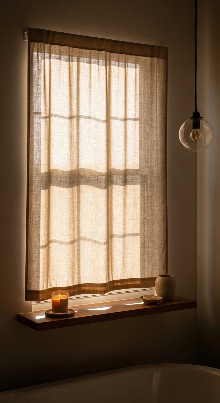 If your bathroom has a window, switch to soft, light-filtering curtains in warm tones. Choose fabrics like linen or cotton in shades of cream, beige, or soft brown. These materials let in natural light while adding a cozy layer to the space. Avoid heavy or dark curtains that block light completely. The goal is to create a soft, warm glow during the day. Pair the curtains with simple decor to keep the look balanced. This small change can make your bathroom feel brighter and more inviting during fall.